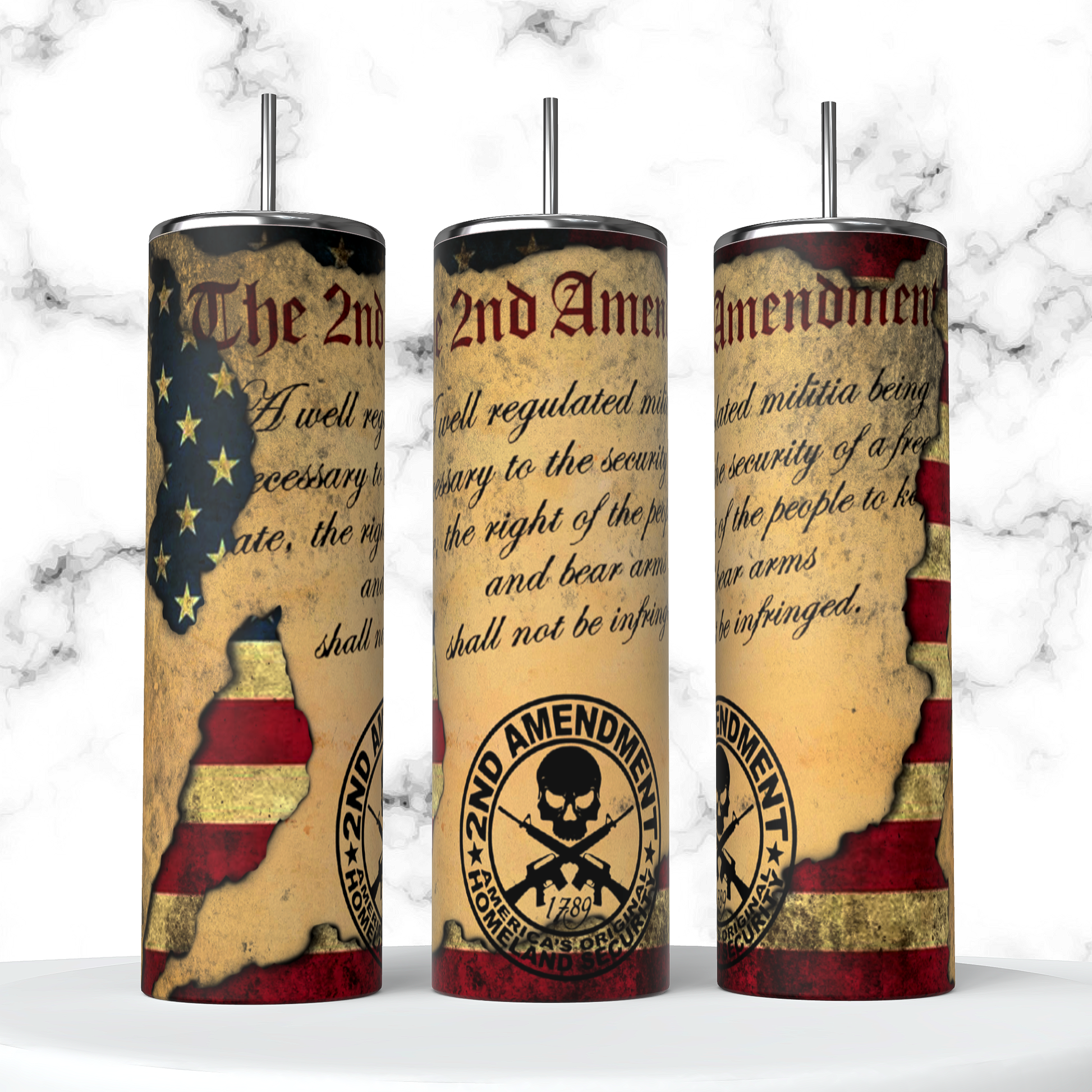 Design: Vintage style paper with 2nd amendment written out and spots of paper torn with American flag coming through