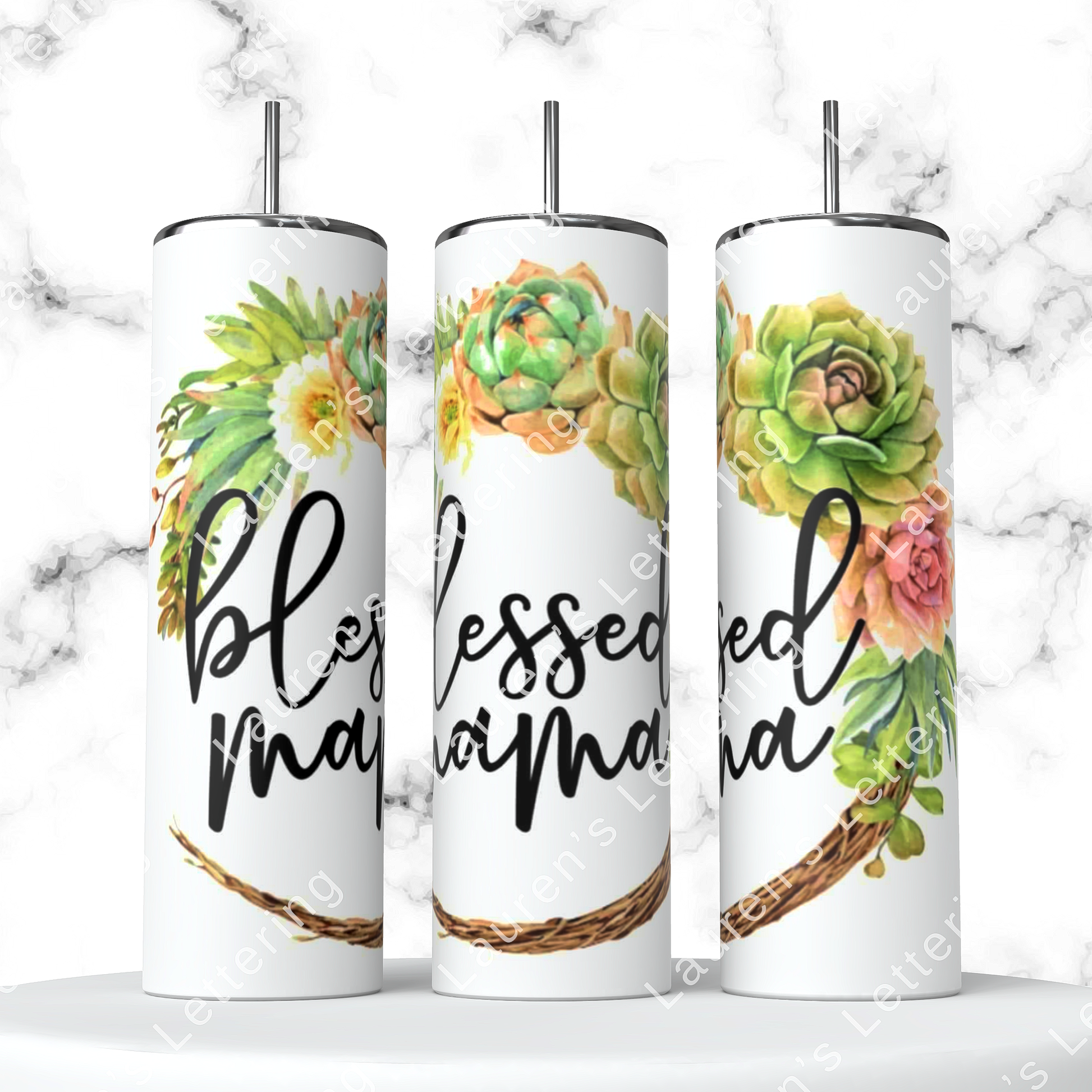 Designs can be done on a 20 or 30 oz skinny tumbler.