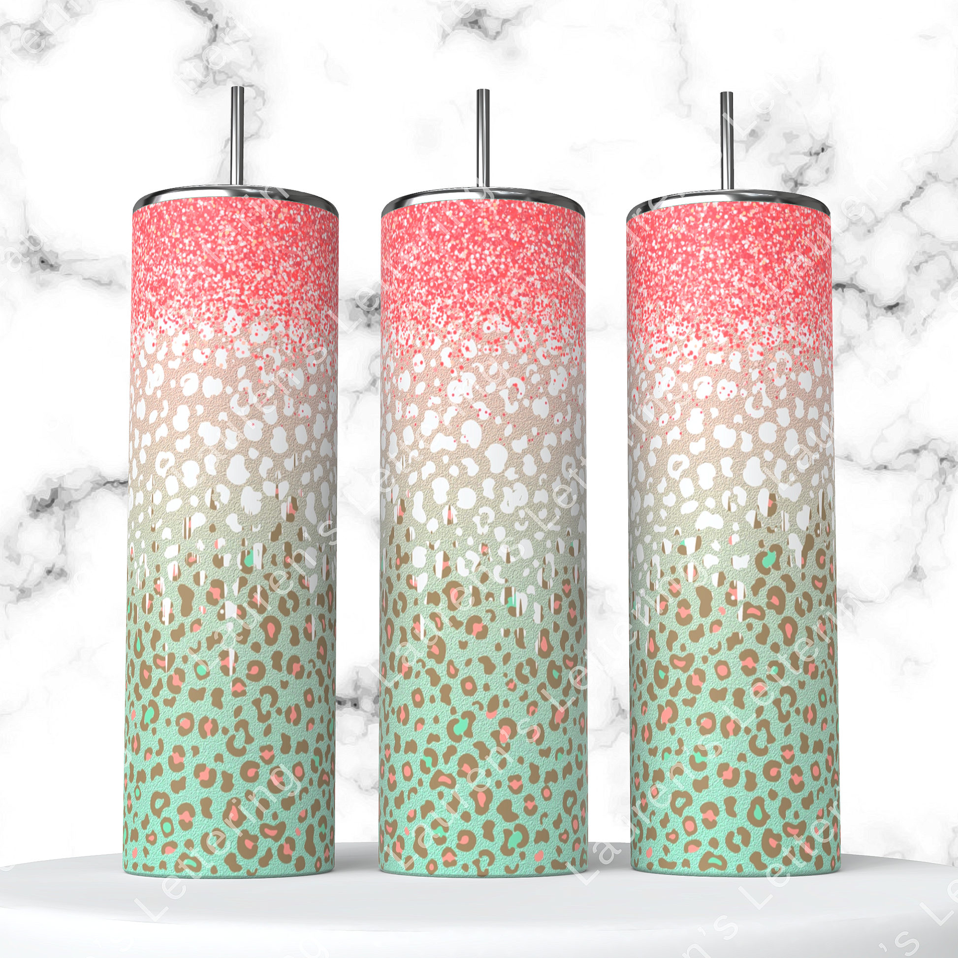 Design: Mint, pink and silver ombre with faux glitter leopard